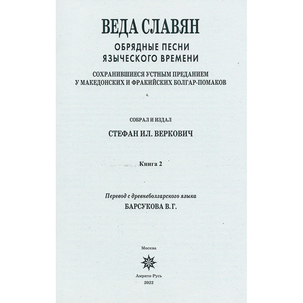 Книга: Веда Славян. Книга 2 (Веркович Стефан И.); Амрита, 2017