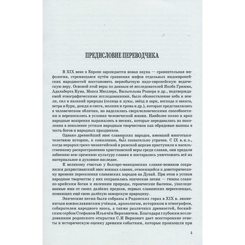 В книге С.И. Верковича "Веда Славян", том II, выпущенной в 1881 году, (теперь репринтное издание в русском переводе) приведены собранные им эпические народные песни и предания народов помаков и марваков в Родопских горах, которые сохранили в устном народном творчестве песни-гимны родным богам и явлениям природы. Гимны посвящаются в основном славяно-арийским богам - Коледе, Велесу, Белбогу, Даждьбогу, Ладе, Живе, Вишну, Сиве и др. Песни посвящаются временам года, сезонным работам, а также народным праздникам, таким, как Ласточкин день, Виноградный день, Сырный день и др. Предания содержат также множество заговоров и мистических сцен. Книга полезна широкому кругу читателей, интересующихся доисторическим, дохристианским периодом жизни славян, а также ведической культурой.