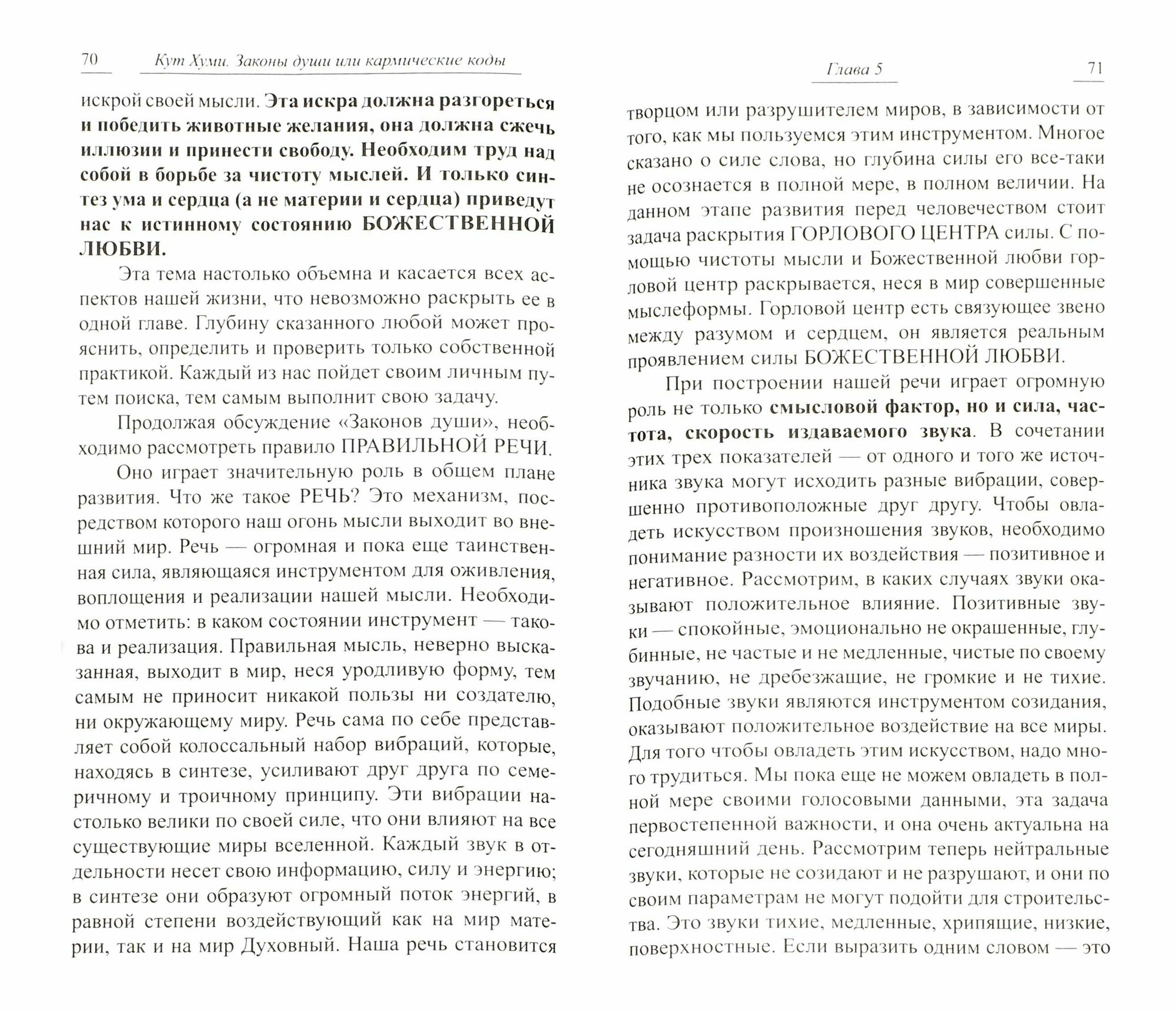 "Законы души, или Кармические коды" - книга тонкая, с серыми страницами, шрифт меняется от обычного до выделенного жирным, информация воспринимается легко, т.к. написано просто и доступно, есть градации по главам. Книга описывает все-все аспекты жизни: от того, как должна быть развита душа и основных заповедей, до материальных ценностей - как относиться к ним. Книга учит жизни, помогает разобраться в себе, выяснить что не так с кармой, понять кармические коды, объясняет что такое реальность, а что такое иллюзия, предлагает практику медитации. Очень важная информация собрана в такой тонкой книге, вроде бы информация известная и можно ее найти в любых других книгах, НО, именно здесь - она подана как-то сжато и напористо, что несомненно несет за собой изменение мировоззрения.