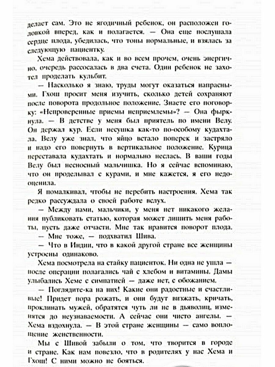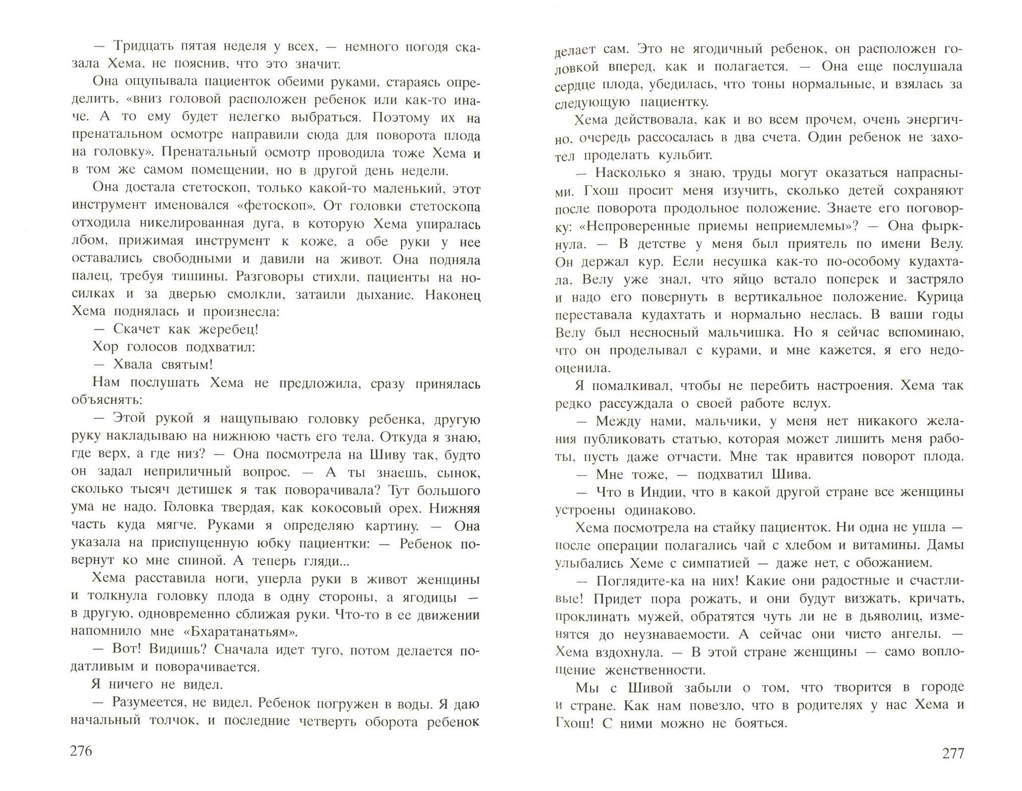 Это одно из немногих современных литературных произведений, которое захватывает тебя с первого абзаца и растворяет в себе до последней точки. С его героями ты совершенно незаметно начинаешь чувствовать их боль, глубину их страданий,вершину радости, любовь, злость...Вергезе, как искусный психолог, глубоко и четко выписал каждый образ, ничего не забыв, но и не прибавив лишнего нюанса в характере.