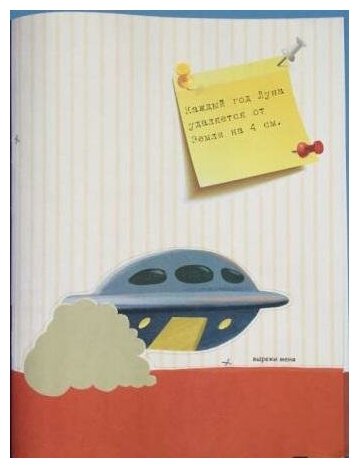 Книжка-вырезалка на космическую тематику. То, что должно получиться, представлено на обложке. Предполагается частичное вырезание 15 из 16 имеющихся листов, слой за слоем из которых и складывается объемная картинка. Инструкция есть, так же на некоторых листах написаны факты о космосе.