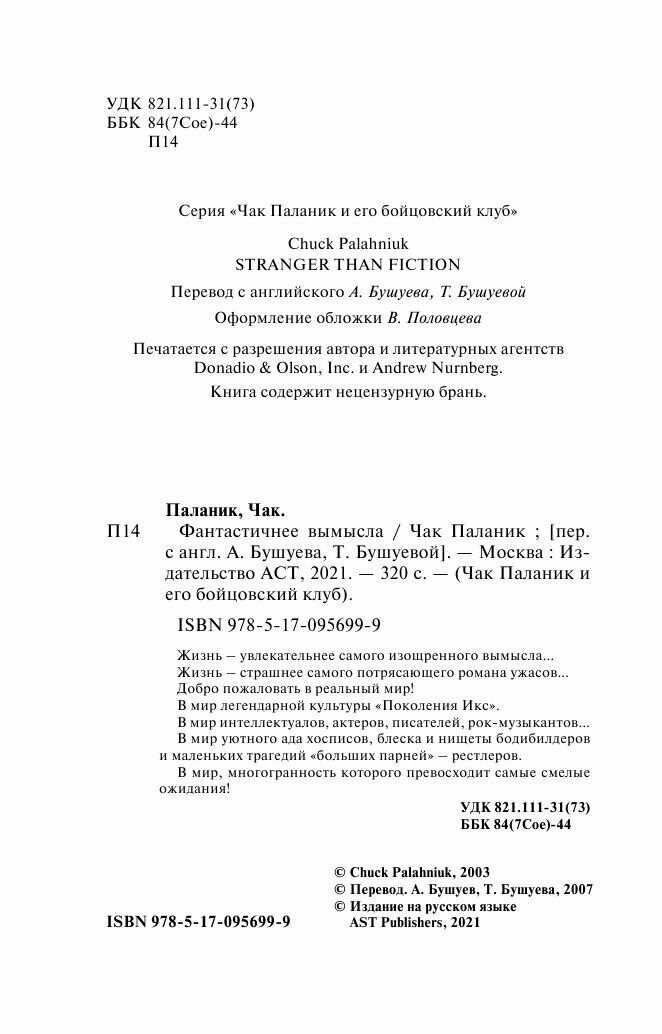 Книга: Фантастичнее вымысла (Чак Паланик); АСТ, 2021