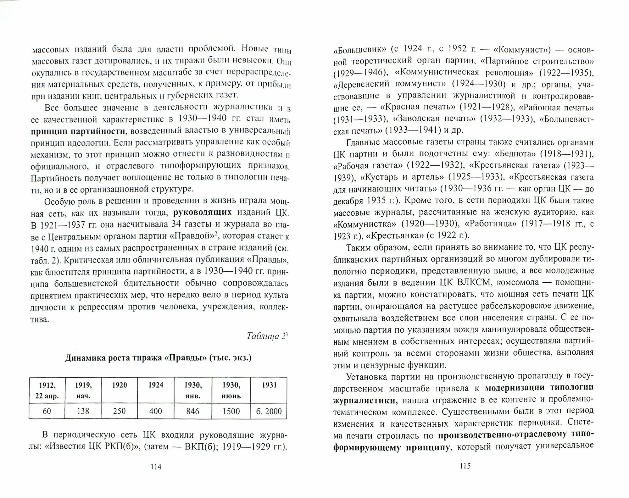 Книга посвящена сложному, впервые исследуемому периоду истории журналистики СССР 1928-1950-х годов. Журналистика рассматривается в контексте протекавших тогда процессов массовизации, политизации и секуляризации общества, в ходе становления системы массовых коммуникаций, включавшей печать, радиовещание, кинематограф, фотографию. Раскрываются позитивные и негативные особенности развития советской журналистики сталинского периода с его системой манипулирования общественным мнением (принцип бдительности журналистики, мифологизация контента, политический театр Сталина и др.). Особое место в книге занимает период Великой Отечественной войны, когда проявились лучшие качества советских публицистов, ковавших боевым словом Победу над фашизмом.