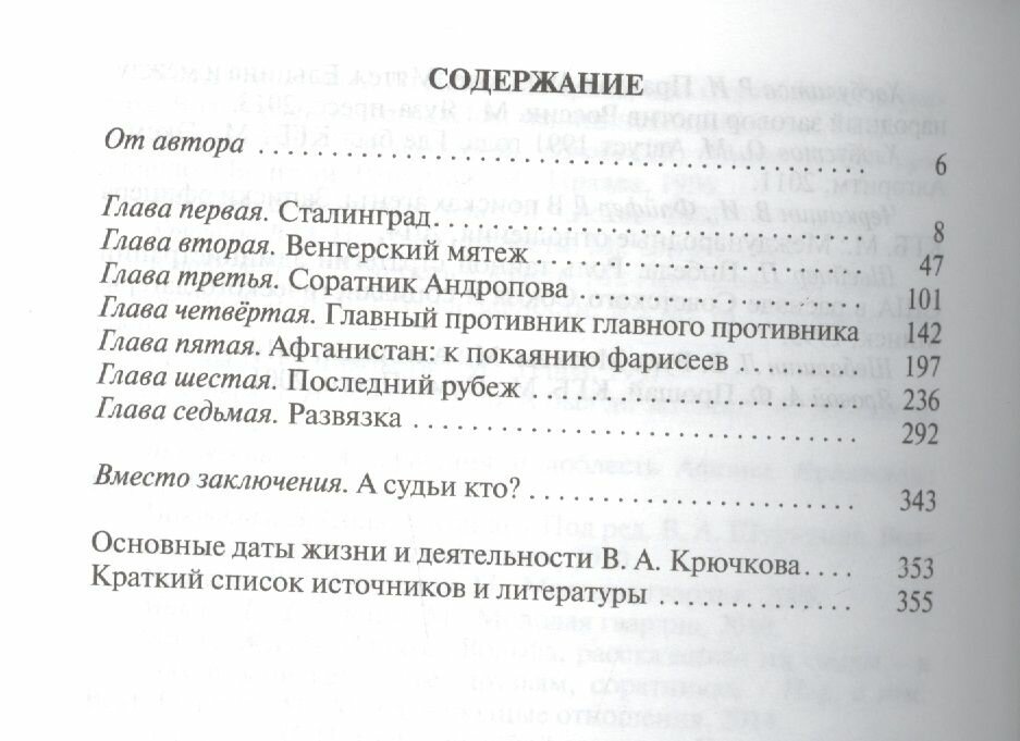 Очередное биографическое исследование автора посвящено жизни и деятельности многолетнего руководителя советской разведки, возглавившего Комитет государственной безопасности СССР в переломный период истории, в годы обострившегося противостояния двух полярных политических сил, завершившегося распадом Советского Союза. Важными вехами биографии героя стало его участие в обороне и восстановлении Сталинграда, венгерских событиях 1956 года и Афганской войне, деятельности Государственного комитета по чрезвычайному положению (ГКЧП), попытавшегося в августе 1991 года предотвратить гибель великой державы. Автор попробовал разобраться в причинах резкого расхождения в оценках роли В. А. Крючкова в знаковых событиях советской истории.