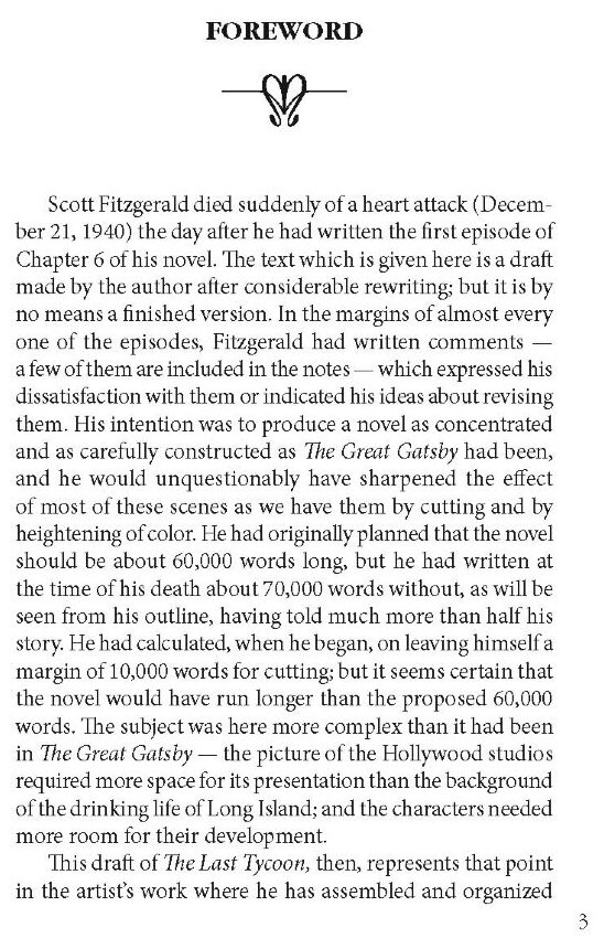 Это самый последний, пятый, роман Френсиса Скотта Фитцджеральда, который оказался незаконченным в связи с внезапной смертью автора от сердечного приступа. Роман уже после смерти писателя был отредактирован и подготовлен вместе с заметками и черновиками для печати другим писателем - честно говоря, я не знала всей этой информации до того, как покупала книгу, потому что мне казалось, что "Последний магнат" точно также у всех на слуху, как и другие романы автора. Некоторые читатели ни в какую не хотят знакомиться с неоконченными произведениями авторов, считая, что это равнозначно простому копанию в чужих черновиках и записях, но тут мне на ум приходят незавершенные или опубликованные посмертно романы Джейн Остин, которые точно также читаются и экранизируются...
