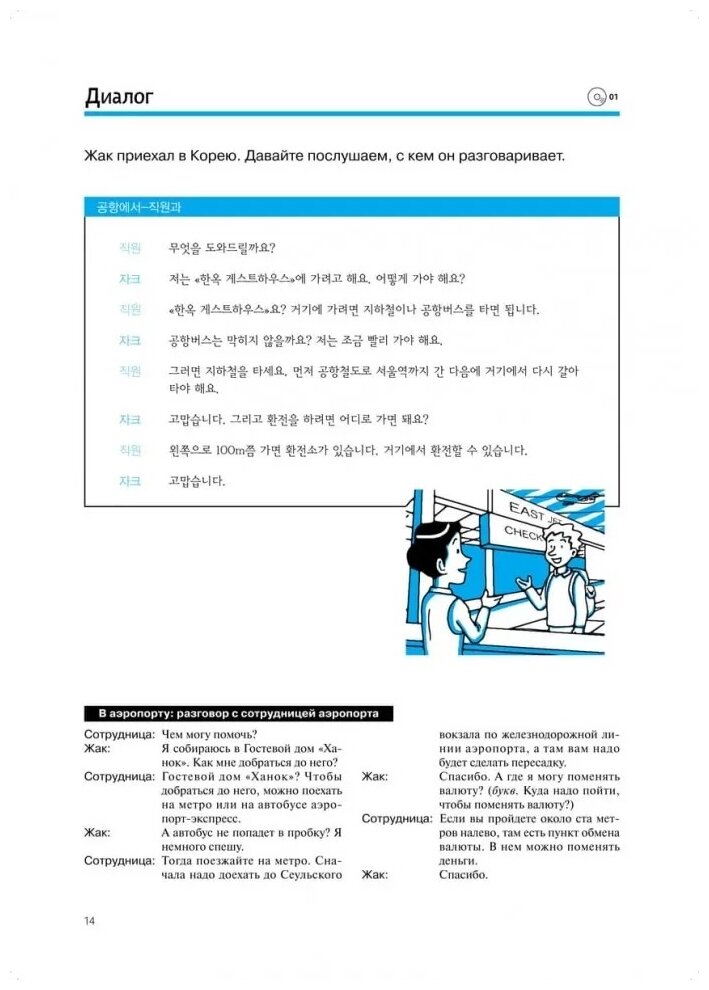 Авторы пособия используют оригинальный методический прием, позволяющий учащемуся погрузиться в языковую среду и усвоить разговорные модели корейского языка. Сквозной персонаж курса - француз Жак - приезжает в Корею, что позволяет учащемуся познакомиться с культурой страны через разнообразные жизненные ситуации.