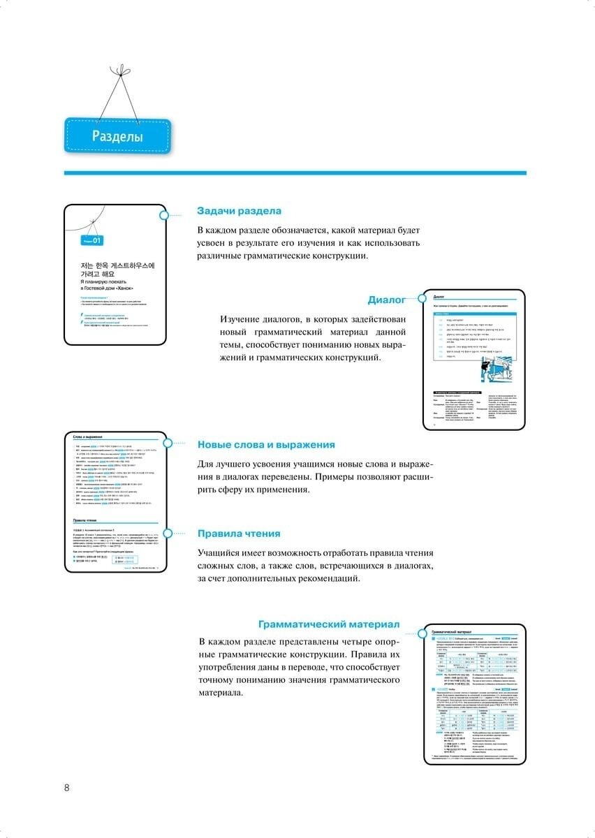 Учебное пособие для продолжающих. Также как и в учебнике ступени 1. Подразделено на разделы. Много иллюстраций. Всё очень хорошо объясняется. В каждом разделе есть культурологический комментарий, где рассказывается о традициях, культуре или обычаях Кореи, либо еще что-то, чего мы не знаем. Обложка мягкая. Иллюстраций много, что делает нескучным занятия по учебнику. Много разобранных диалогов, а также много грамматики и разговорной части. CD покупается отдельно.