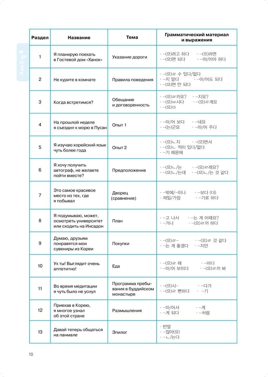 Пособие ориентировано на учащихся начального уровня, уже имеющих представление о корейском алфавите хан-гыль и освоивших учебный материал первой части курса. В пособии раскрыты все аспекты языка и речи: каждый из 13 разделов книги посвящен определенной разговорной теме и содержит диалог, новые слова и выражения, правила чтения, грамматический материал, текст, практические упражнения, а также культурологический комментарий.