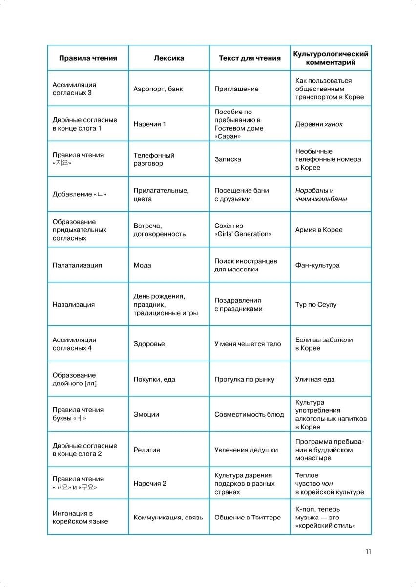 Пособие содержит различные диалоги, тексты, упражнения, разбор грамматики. Все написано автором на очень доступном языке. Данная книга для начинающих, которые уже ознакомились с Хангыль. Также в конце каждого урока представлен интересный факт о Южной Корее.