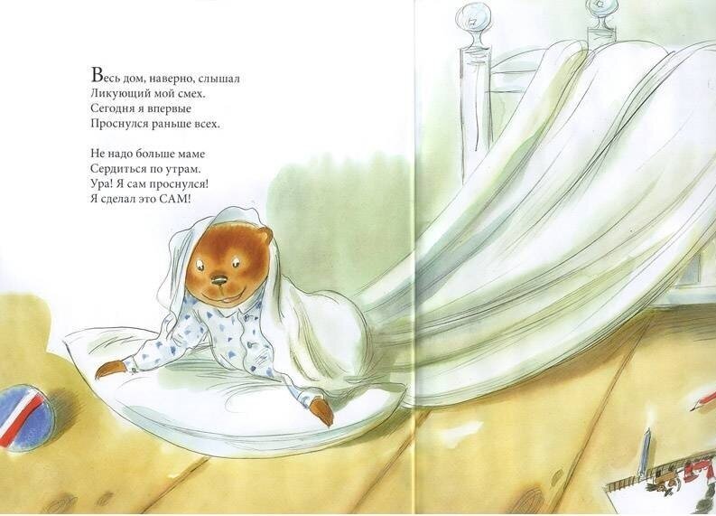 Однажды маленький медвежонок решил стать большим. А всем известно, что большие всё делают сами: умываются, чистят зубы, завтракают и даже сами одеваются. И подумаешь, если придётся щеголять в не совсем одинаковых носках и курточке наизнанку, а завтрак почему-то разлетится по всей кухне... Зато маме можно будет гордо сказать: "Я сделал это САМ!"