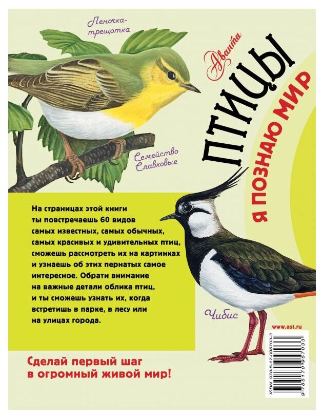 Обложка плотно-мягкая, страницы плотные,не просвечивают, иллюстрации хорошие, реалистичные и не просто птица, но и кусочек фауны, к ней прилагающейся. По странице на птичку. Описание, некоторые факты, подписанные иллюстрации. На форзацах собраны и пронумерованы все заявленные 60 птиц - такое своеобразное содержание (прятно для разглядывания и удобно). Для каждой птицы указаны отряд и семейство. Мне и дочке книга понравилась, думаю она вполне на вырост. Не энциклопедия, не идеал, но любителям птиц могу рекомендовать.