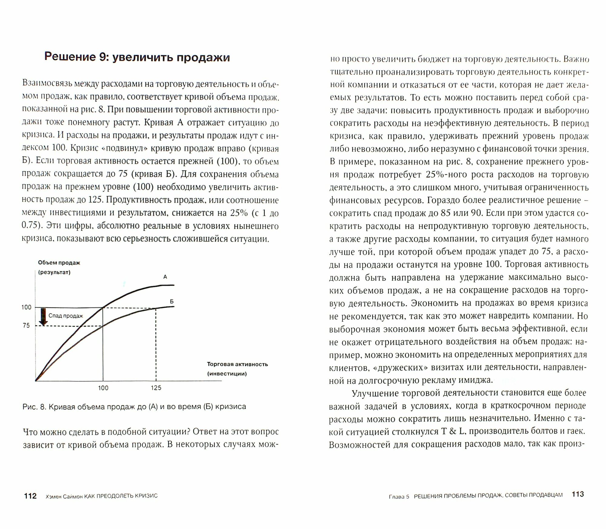 Ознакомительный фрагмент был интересным, с заявлением что надо не снижать издержки, а повышать продажи… А дальше? Дальше просто мрак: «снижение объёмов продаж лучше чем снижение цен» – интересно, на чем основан этот вывод? «Необходимо снижать издержки, например для многих компаний на 40%» – да-да, именно такими «обоснованными» заявлениями и пестрит книга со второй главы. Полный бред. -