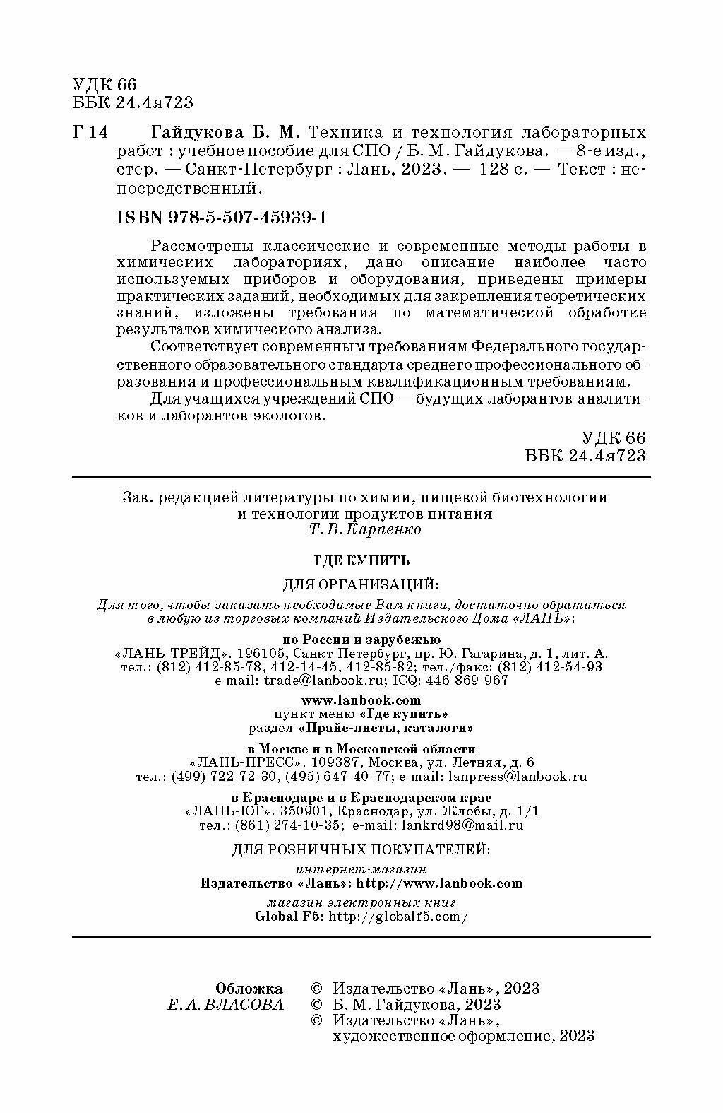 Сервис сравнения цен СкидкаГИД предлагает сравнить цены на товар «Книга: Техника и технология лабораторных работ. Учебное пособие (Гайдукова Бэлла Михайловна, Харитонов Сергей Владимирович); Лань, 2023»