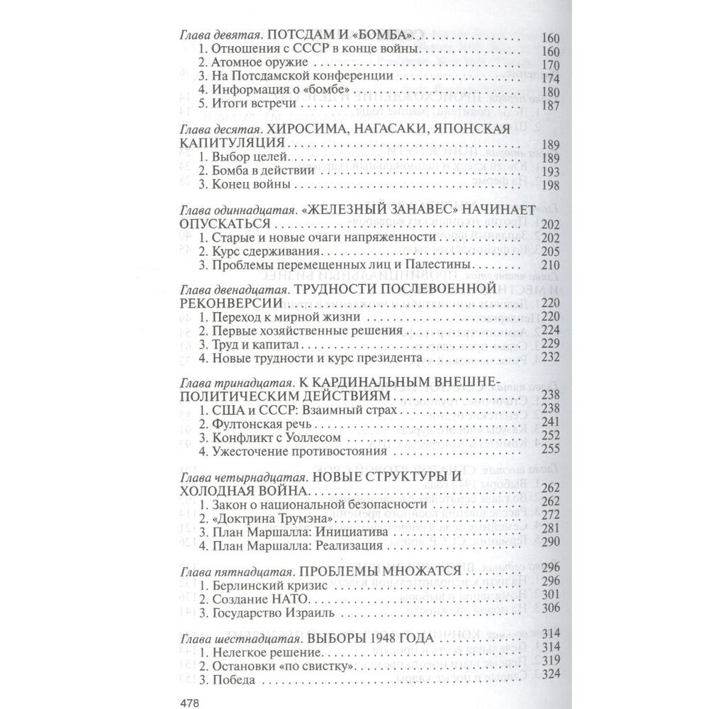 Гарри Трумэн (1884-1972) вышел на главную политическую арену США почти случайно: он занял высший государственный пост в апреле 1945 года, когда скоропостижно скончался президент Франклин Рузвельт. Это был переломный момент мировой истории, и президент США - наиболее мощной по итогам Второй мировой войны в экономическом отношении державы - должен был сделать исторический выбор, от которого зависела судьба человечества на несколько десятилетий вперед. Гарри Трумэн достойно представлял США на Потсдамской конференции глав трех великих держав, ему пришлось нести ответственность за решение об атомной бомбардировке японских городов Хиросимы и Нагасаки, резко ускорившей окончание войны. Он активно участвовал в создании ООН и блока НАТО, способствовал основанию государства Израиль, при нем начались холодная война с СССР и корейская война. Внутри страны Трумэн инициировал ряд либерально-демократических реформ, вписывающихся в программу "справедливого курса", продолжавшего "новый курс" Рузвельта.