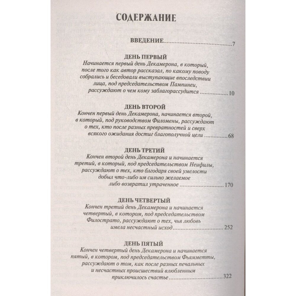 Главная книга величайшего итальянского писателя эпохи Возрождения Джованни Боккаччо - собрание ста новелл, большинство из которых посвящено теме любви в ее различных проявлениях, включая и эротические и трагические оттенки. Проникнутые духом свободомыслия и жизнерадостным юмором эти истории повествуют о человеческой хитрости и сообразительности, щедрости и скупости, великодушии и жестокости, дают многоцветную панораму нравов итальянского общества.