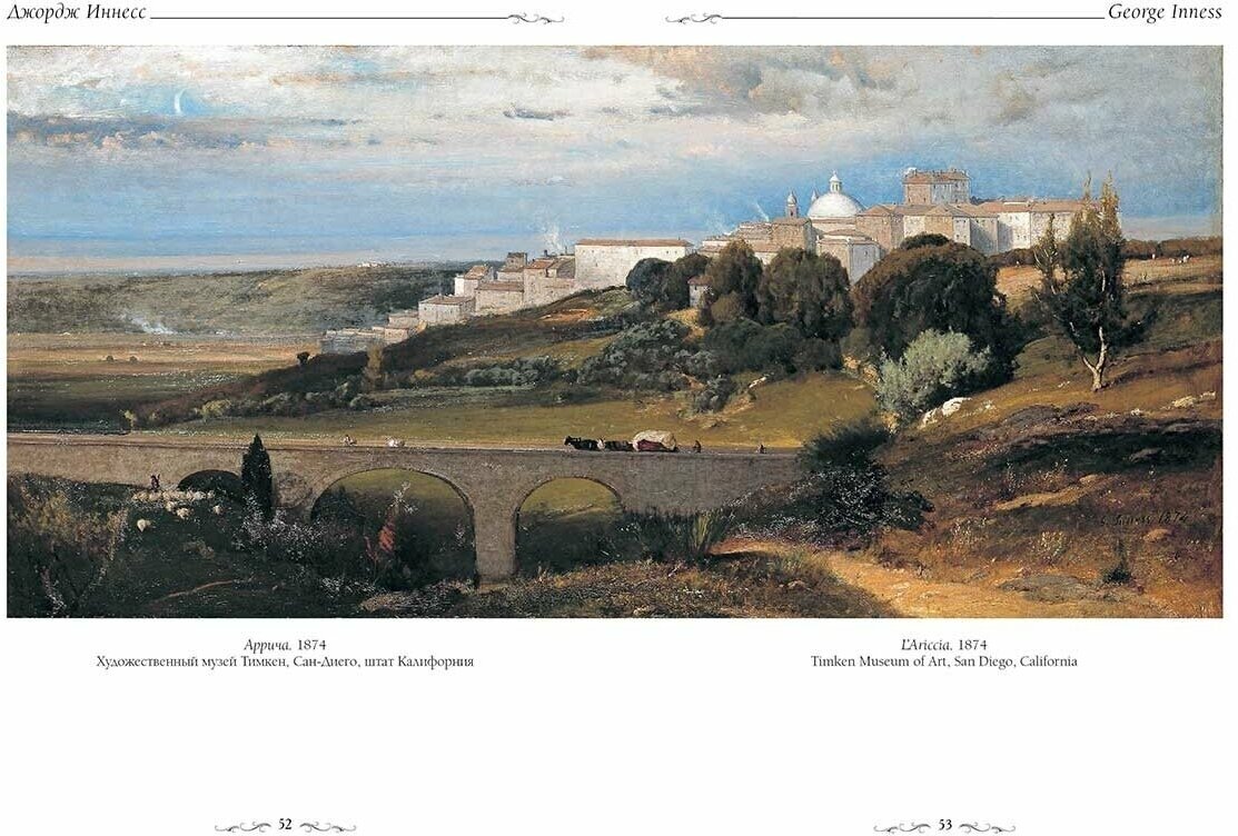.внимание французский пейзажист Гигнокс. Также молодой живописец посещал занятия в Национальной академии дизайна и много работал самостоятельно, копируя работы художников «Школы реки Гудзон». Посетил Рим, Лондон и Париж, где проникся творчеством мастеров барбизонской школы, многие идеи и практику которых трансформировал при становлении собственного стиля. В своих работах на родине Джордж Иннесс пишет природу Нового Света. Его точные по рисунку и наполненные личными переживаниями пейзажи (на мироощущение художника большое влияние оказали работы философов Э. Сведенборга и У. Джеймса) принесли Иннессу широкую известность в североамериканском обществе.