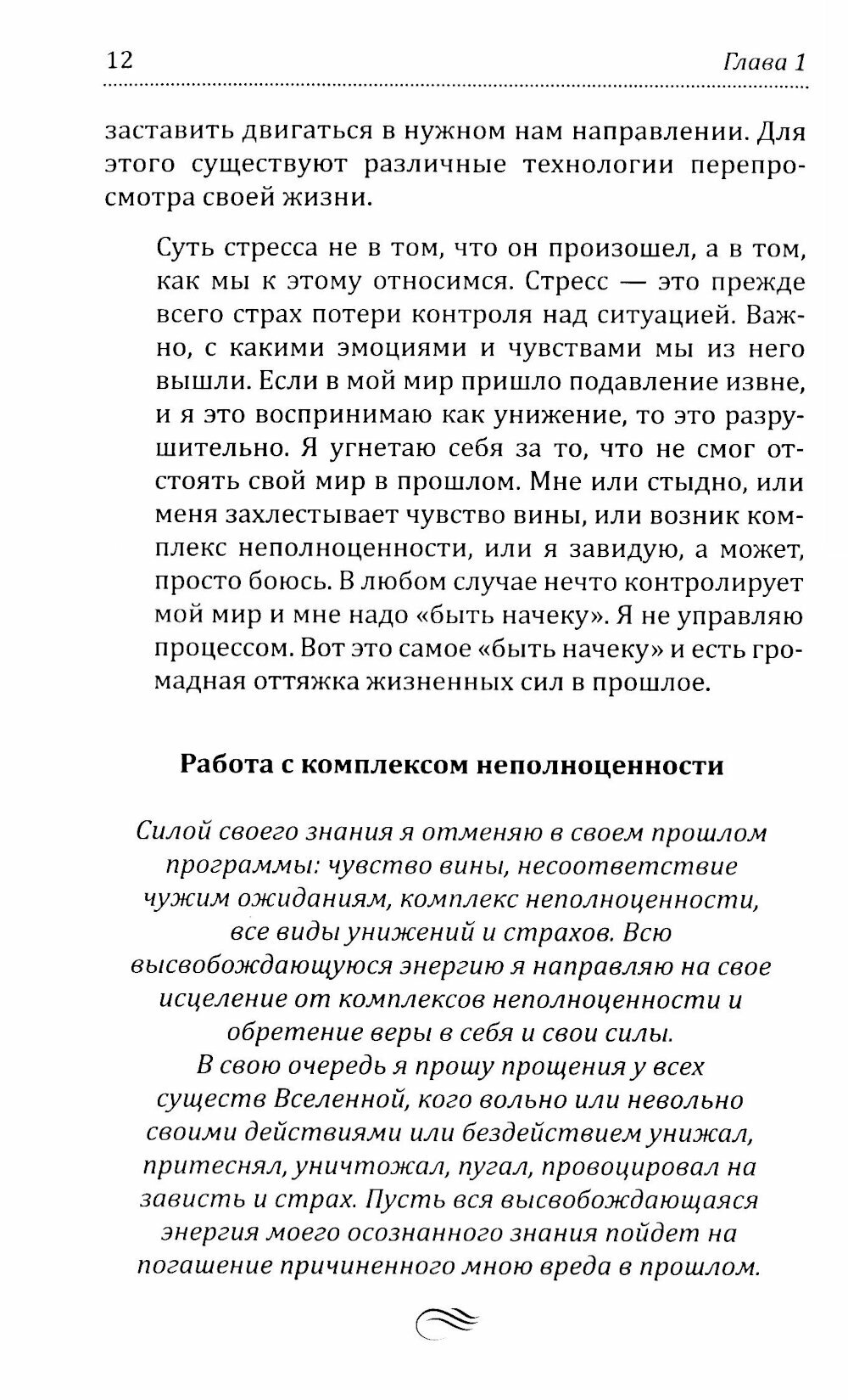 Аффирмации и настрои изложены в ёмких, веских формулах и рассчитаны на различные проблемные ситуации, которые встречаются в жизни человека.