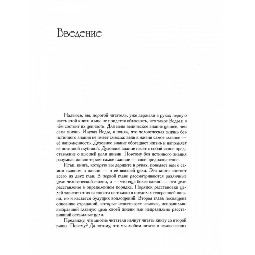 Главной из которых является цель - попасть в царство Бога. Не просто избавиться от страданий, но полюбить Бога и служение ему, выше всего на свете. В основном преданному служению Господу и посвящена данная книга.