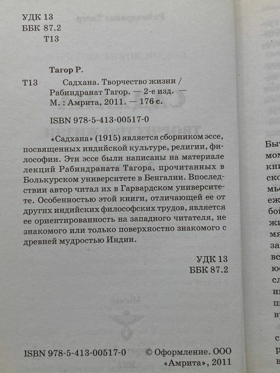 Сервис сравнения цен СкидкаГИД предлагает сравнить цены на товар «Книга: Садхана. Творчество жизни (Тагор Рабиндранат); Амрита-Русь, 2017»