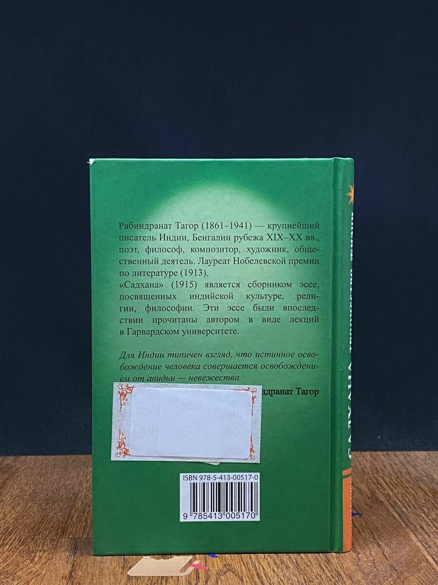 "Садхана" (1915) является сборником эссе, посвященных индийской культуре, религии, философии. Эти эссе были написаны на материале лекций Рабиндраната Тагора, прочитанных в Болькурском университете в Бенгалии. Впоследствии автор читал их в Гарвардском университете. Особенностью этой книги, отличающей ее от других индийских философских трудов, является ее ориентированность на западного читателя, не знакомого или только поверхностно знакомого с древней мудростью Индии.