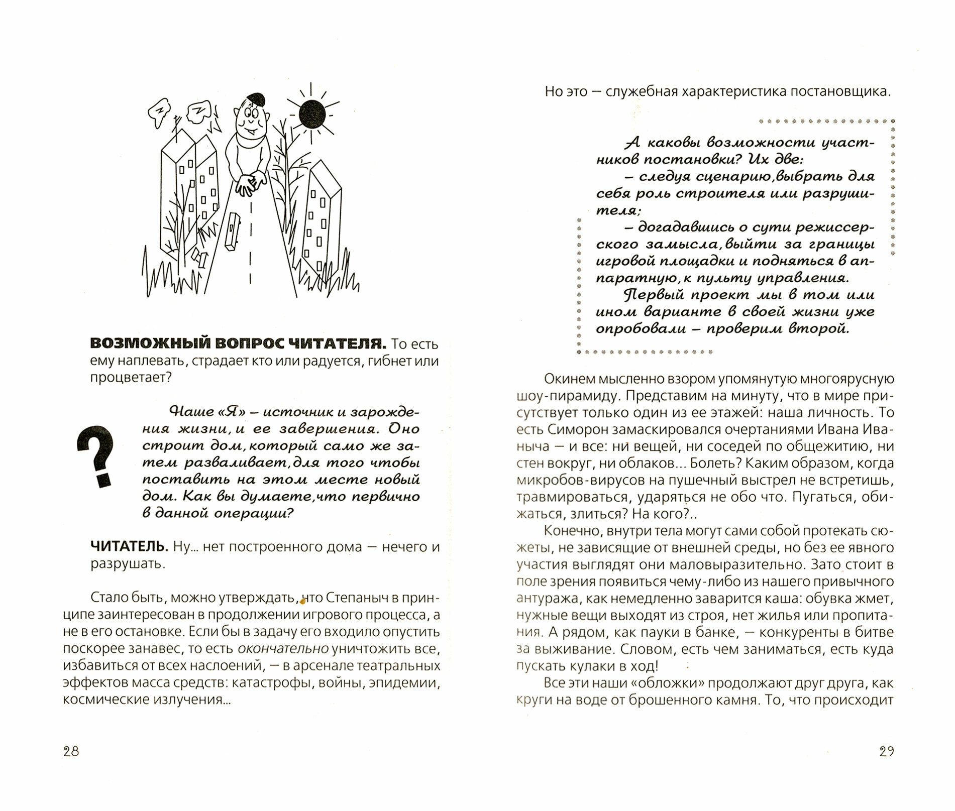 Это СИМОРОН, дорогие мои! Прицельно искала книгу этих авторов. На руках уже была "Симорон из первых рук".Хотелось расширения. И вот оно! Книгу не перескажешь, перечисляя содержание и похождения главных героев.Главным героем становишься ты сам! Это совсем другое. Это практически переворот сознания, стирание установок и каких-то верований, это как сброс старой программы и .... ты видишь все иначе. Широко, громко, гротескно, легко и весело!