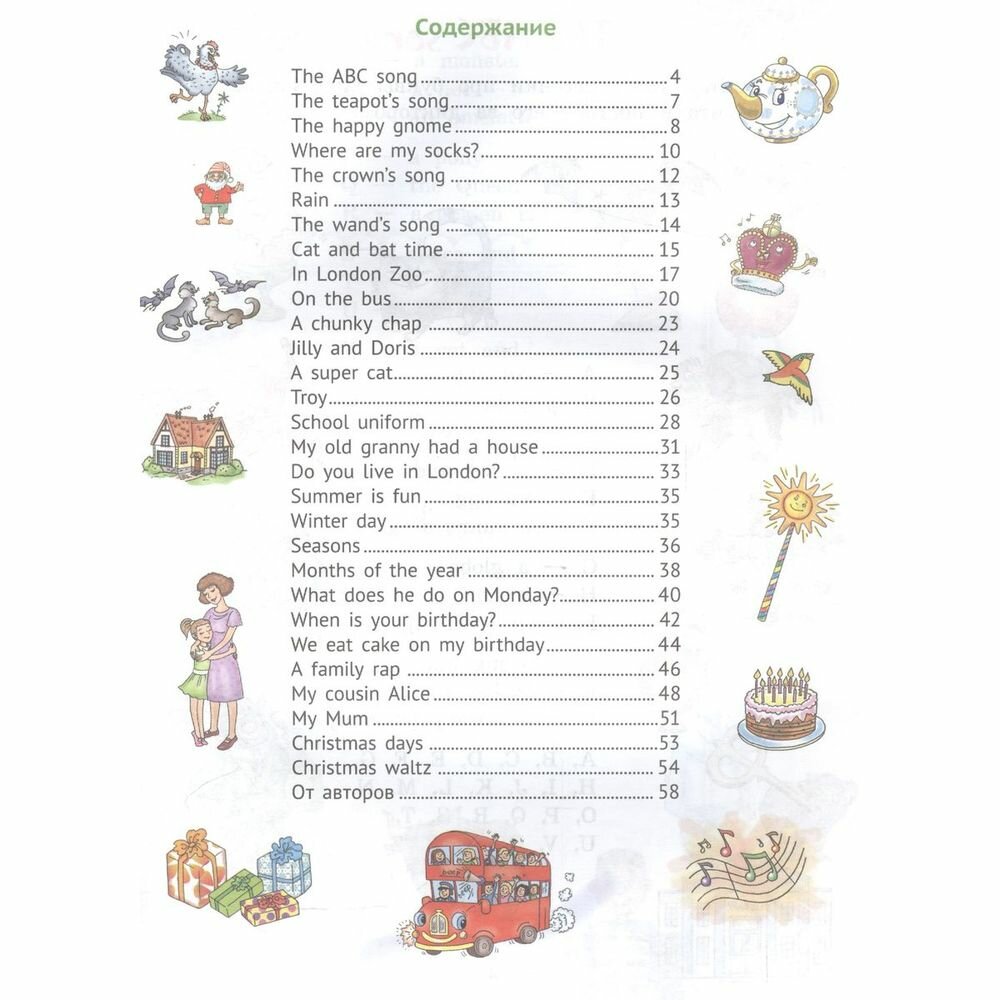 Хорошее пособие для дополнительной работы на уроке или во внеурочное время с младшими школьниками. Книга красочно иллюстрирована, в ней собраны веселые песенки. Способ подачи языкового материала учитывает возрастные особенности детей. и помогает развить все виды речевой деятельности.