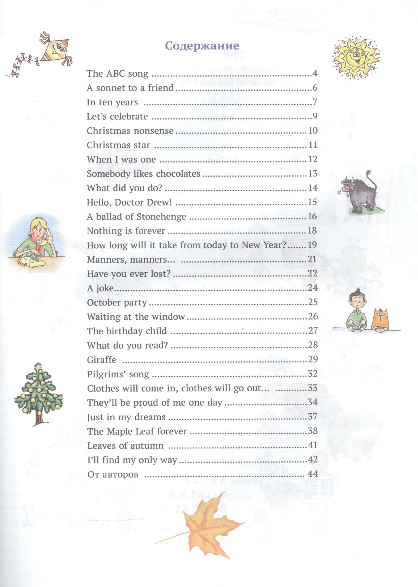 Рекомендую данную книгу, тем кто любит Английский и хочет быстрее на нем разговаривать. Мы использовали ее для детей от 9 лет ( второй год обучения) - учили песни и выступали у себя на утренниках в школе. Песни тематические и подходят как для младших, так и для старших классов. К книге есть аудио, как с голосом, так и без. Очень живые обороты, положенные на мелодию детям даются очень легко и с наслаждением. Это командная работа объединяющая ребят. Рекомендуем