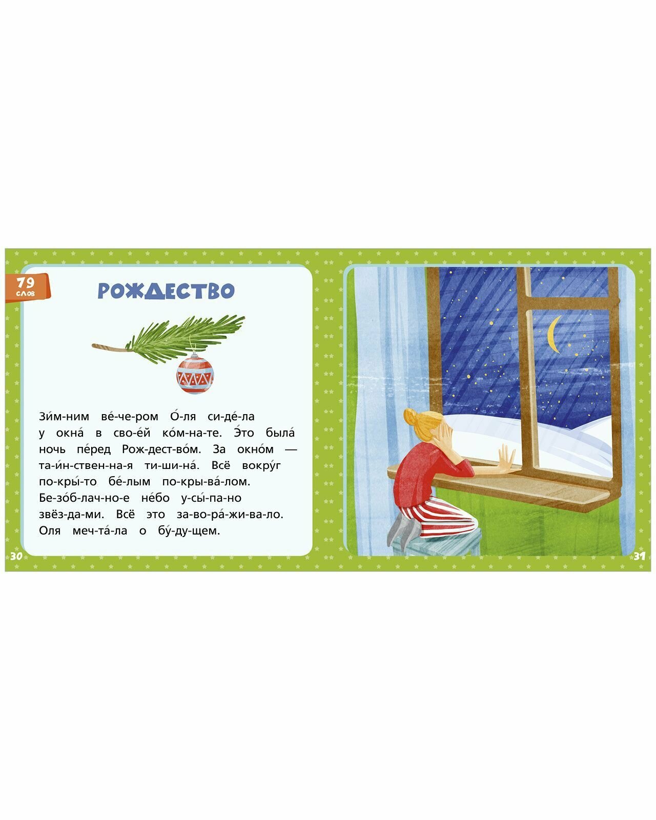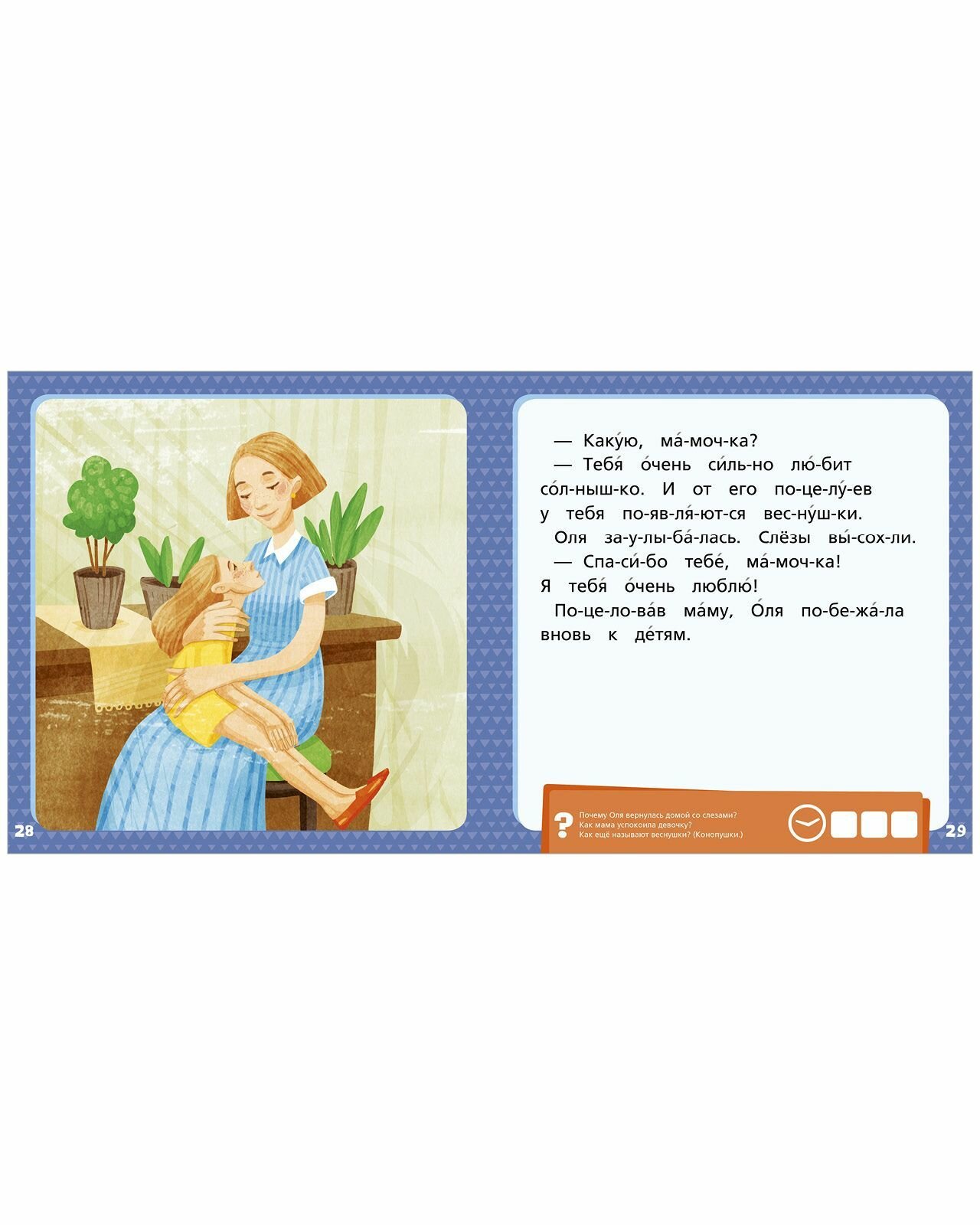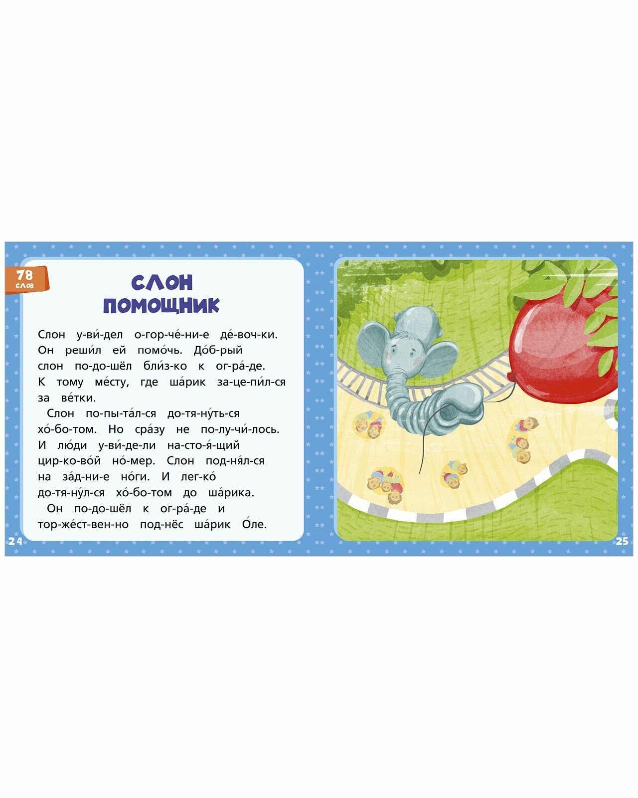 Книжка замечательная! Шрифт крупный, бумага плотная. По такой книге ребенку легко научиться читать, слова разделены по слогам и проставлены ударения. Сказки в книжке небольшие и ваш ребенок не будет уставать. Я купила книгу племяннику и он с удовольствием по ней читал текст, рассматривал картинки, которых в книге почти на каждой странице.