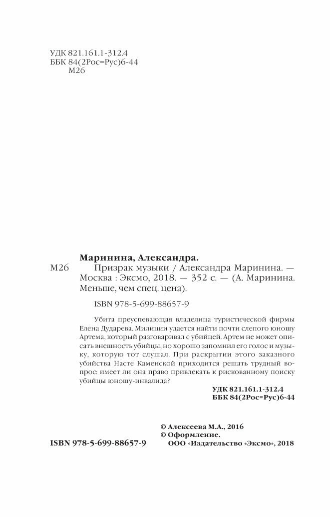 Книга: Призрак музыки (Маринина Александра Борисовна); ООО "Издательство "Эксмо", 2016