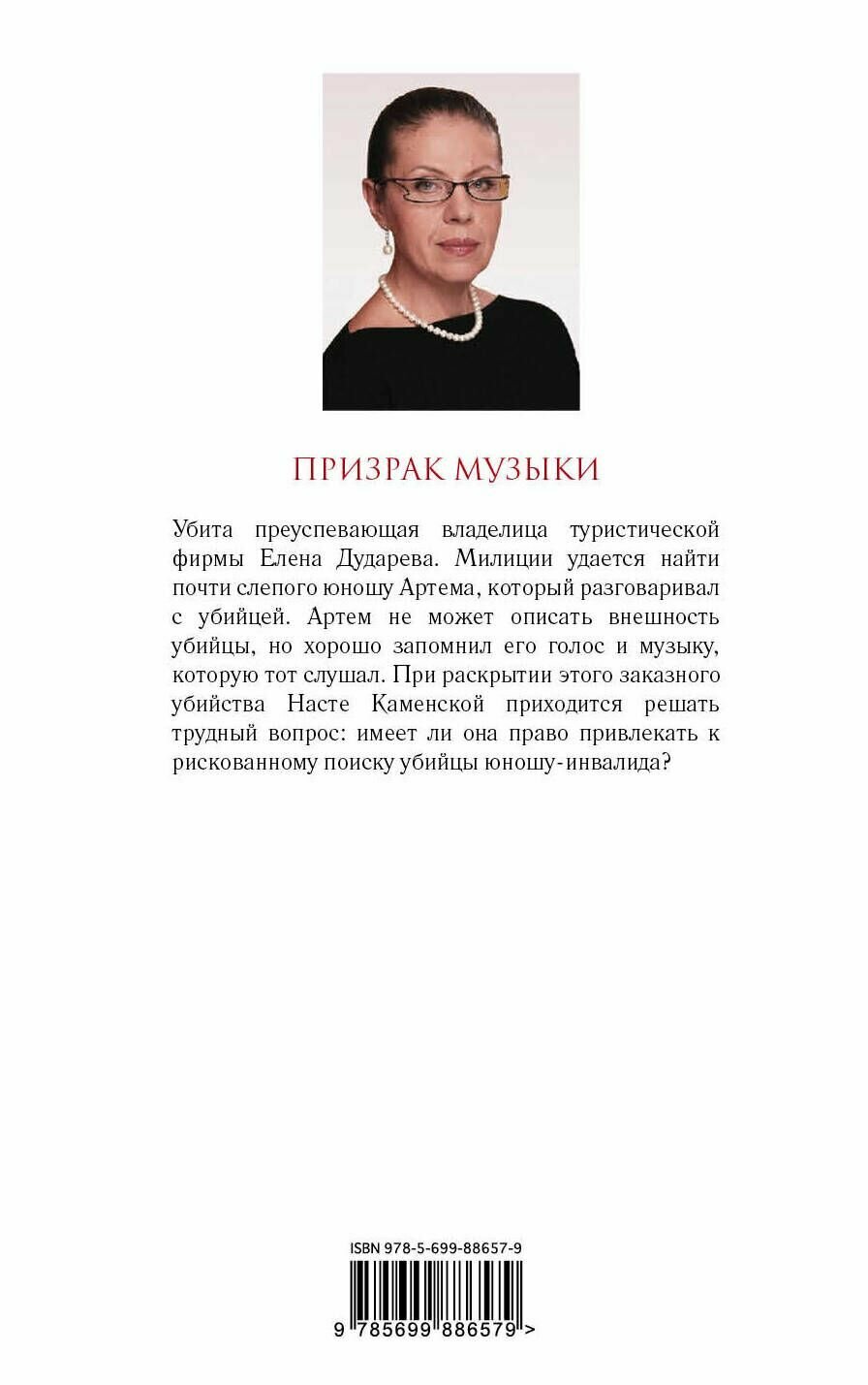 Никогда не читала детективы, но, так как я очень близка с музыкой название“Призрак музыки” меня заинтриговало. Решила прочитать, сначала было не интересно, после 10 страниц я ее отбросила на долгое время,но потом все-таки решила дочитать. Очень интересный сюжет, прочитала на одном дыхании, а в конце ножиданная развязка, это, наверно, больше всего меня удивило. Даже судя по фильмам, многое можно предугадать,но не здесь) Книга Александры Марининой мне очень понравилась, поэтому рекомендую ее к прочтению. Конечно,если бы не мальчик,который не видит,но прекрасно слышит музыку, никогда бы не разгадали тайну убийства Елены Дударевой.
