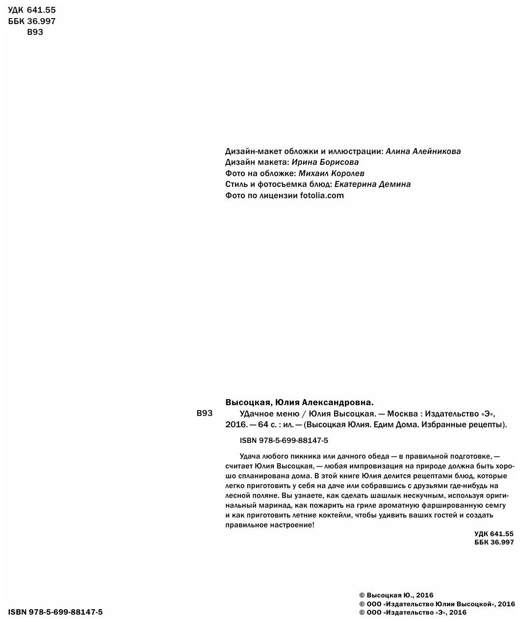 Книга: УДачное меню (Высоцкая Юлия Александровна); ООО "Издательство "Эксмо", 2016