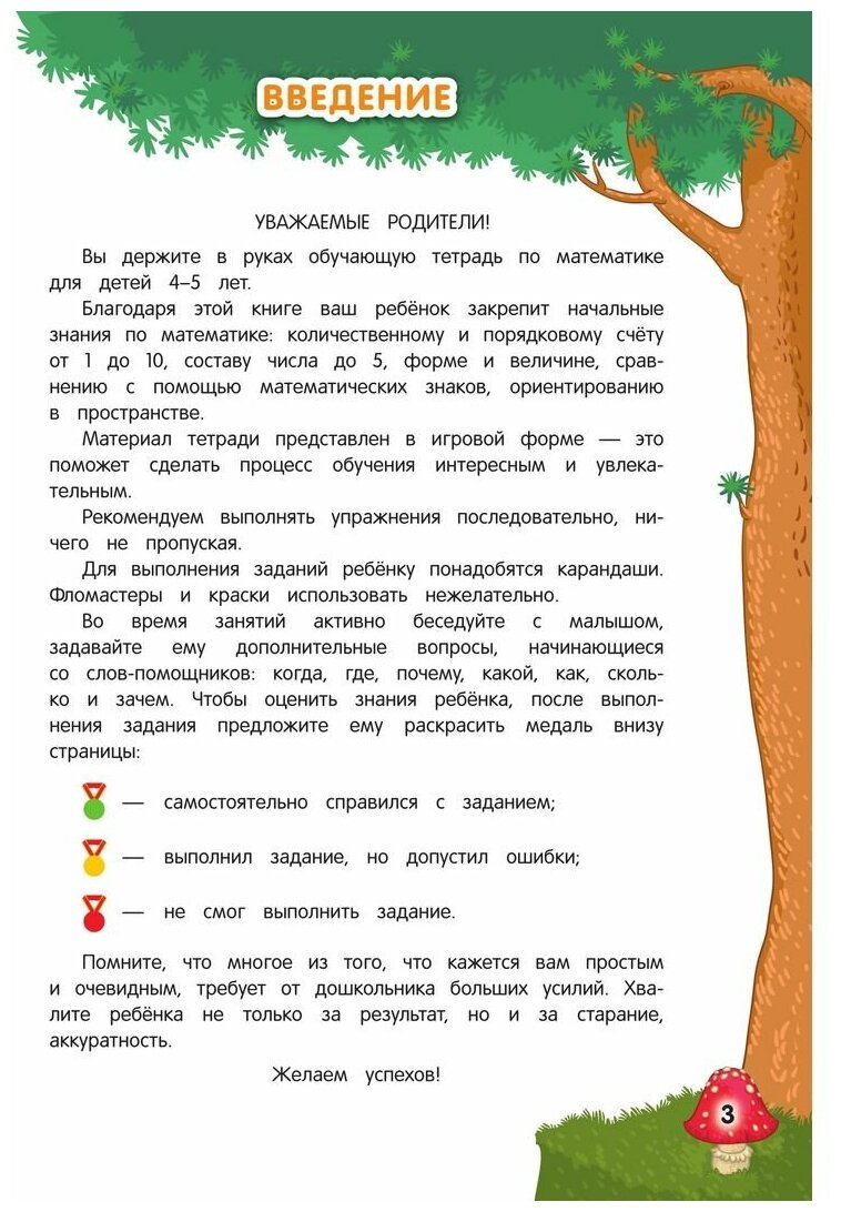 Основная цель пособия - развитие у малыша начальных знаний по математике. В книге имеются задания по количественному и порядковому счету в пределах 10, составу числа до 5, форме и величине, геометрическим фигурам и ориентированию в пространстве.