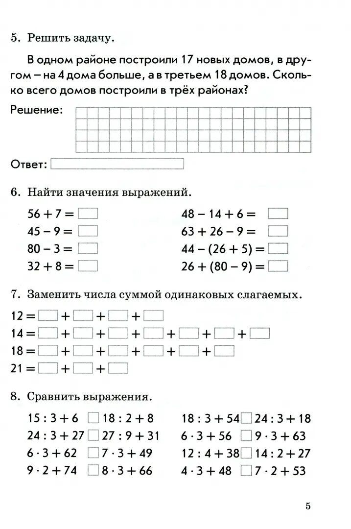 Данный учебный материал поможет вашему ребенку устранить пробелы в знаниях, отработать навыки счета, а также сформирует способность у ребенка решать текстовые задачи, поможет развить логическое мышление. Решение можно прописывать в самом справочном материале, что очень удобно. Ответы к заданием тоже имеются, это позволит проверить правильность решения заданий. Материал подобран очень грамотно и ориентирован на разные уровни знаний у ребенка. Очень полезная книга для занятий с ребенком на летних каникул. Позволяет не забыть пройденный материал и подготовить ребенка к следующему учебному году