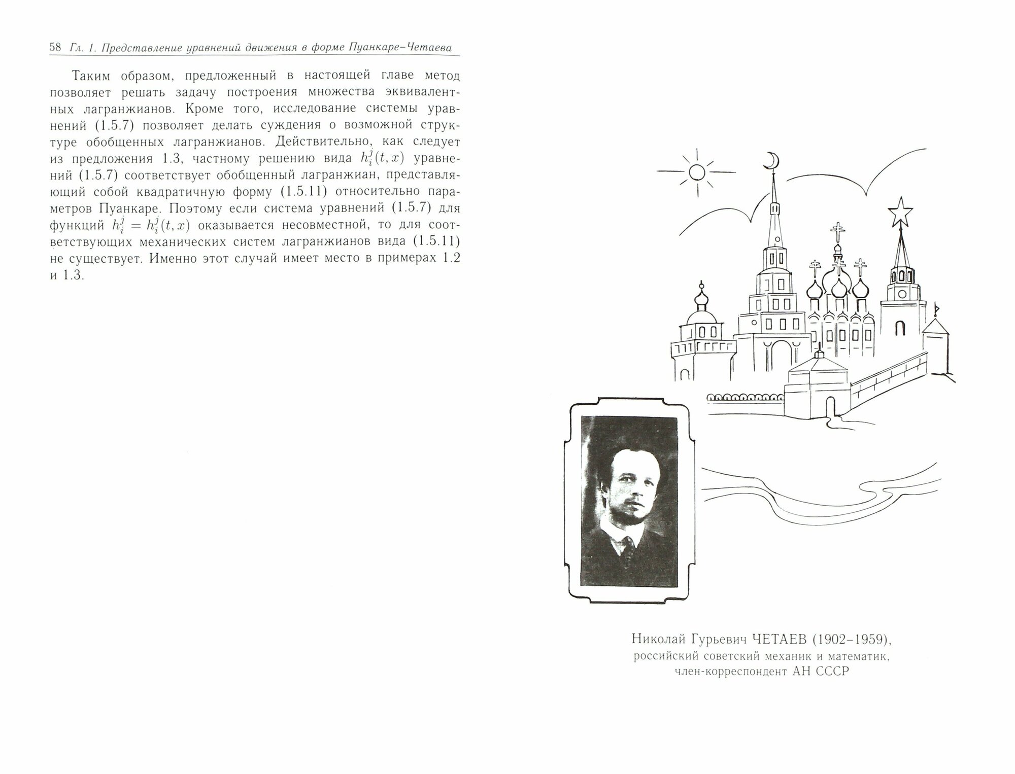 Представление движения неконсервативных и неголономных систем в результате решения уравнений в форме Пуанкаре-Четаева даёт возможность исследователям строить обобщённый лагранжиан и обобщённый гамильтониан при условии самосопряжённости механической системы. Теория обратных задач динамики охватывает в монографии задачи построения функционала действия по свойствам движения, заданным в виде интегрального многообразия и группы симметрий системы.