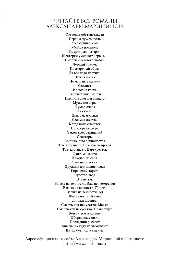 Не скажу, что это самый интригующий продукт от Марининой, но прочитать рекомендую, мне лично понравился. Все лучшее в книге есть, все приемы и тонкости Марининой. Книга конечно не новинка рынка, даже уже можно сказать "история", но кто сказал, что это плохо.