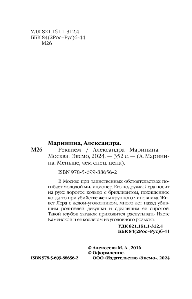 Книга: Реквием (Маринина Александра Борисовна); ООО "Издательство "Эксмо", 2016