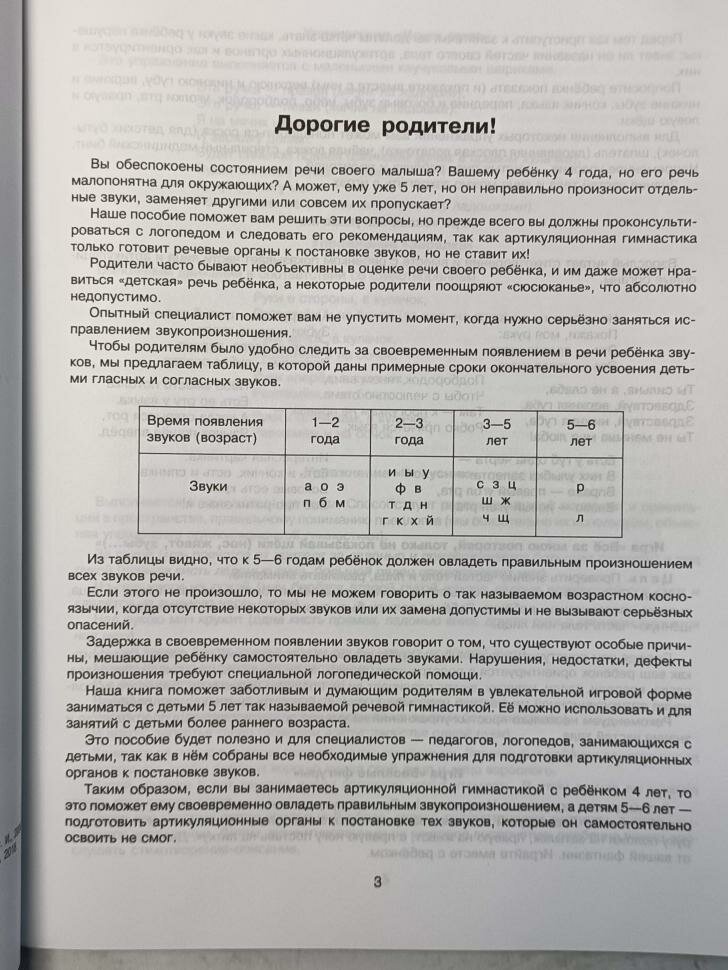 В начале книги приведена табличка в каком возрасте какие звуки должен говорить ребенок.