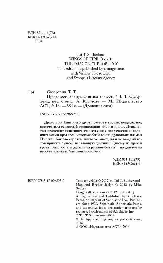 Книга: Пророчество о драконятах (Туи Сазерленд); Издательство АСТ, 2012
