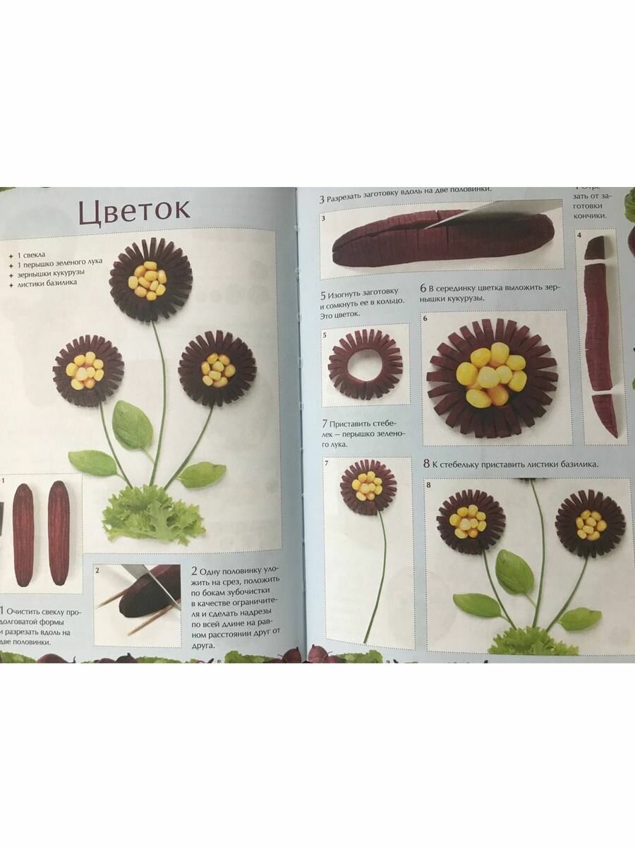 Свежие овощи и фрукты, немного времени и эта книга - и удивительные кулинарные украшения готовы! Великолепные розы и изящные лилии, старинная карета и современный автомобиль, веселый дракончик и грустный слон, игривый лягушонок и мудрая сова - ваши родные и друзья будут в восторге! А дети с удовольствием примут участие в изготовлении эффектных цветов и милых фигурок - их выполнение не требует особых навыков. Оригинально украшенные блюда превратят даже самый обычный завтрак в настоящий праздник! Подробные инструкции и красочные фотографии помогут в работе. Воплощайте вкусные фантазии в жизнь - и ваши блюда станут еще более аппетитными!