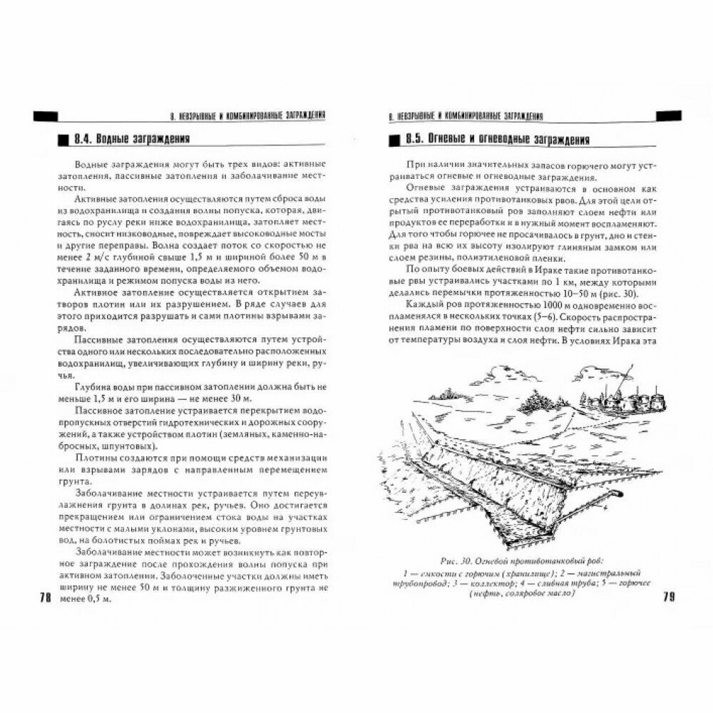 Книга крепкая, обложка твёрдая, печать чёткая, бумага белая и гладкая, имеются чёрно-белые иллюстрации. Рекомендую как сборник хорошего справочного материала, пригодный для изучения основ инженерных заграждений и всего с ними связанного.
