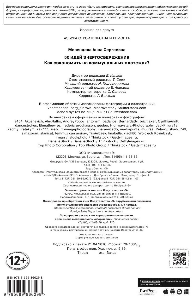 50 идей энергосбережения. Как сэкономить на коммунальных платежах? (Мезенцева Анна Сергеевна); Эксмо-Пресс, 2016