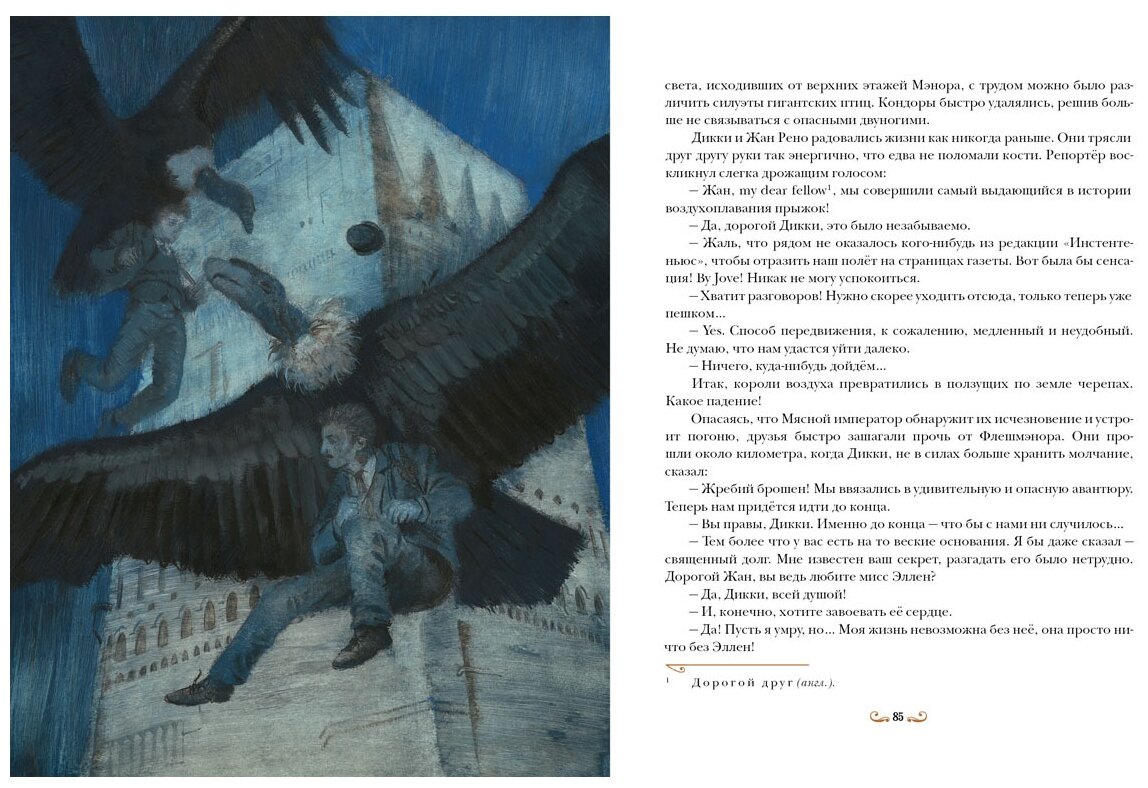 Героям этого удивительного мира воздухоплавателей - Королю репортёров Дику, застенчивому гениальному изобретателю Жану Рено и дочери Мясного императора, красавице Эллен Шарк - предстоят невероятные и захватывающие приключения! Чтобы раскрыть заговор против отца Эллен, поймать воров и снять с себя клеветнические обвинения, Дик и Жан готовы подвергнуться смертельной опасности. Бесстрашные молодые люди не только сразятся с воздушными пиратами, но и сбегут из вынужденного заключения в башне, используя огромных кондоров и создадут прибор, который сыграет решающую роль в судьбе Мясного императора и его дочери.