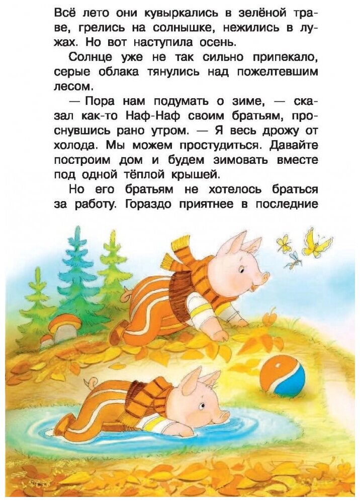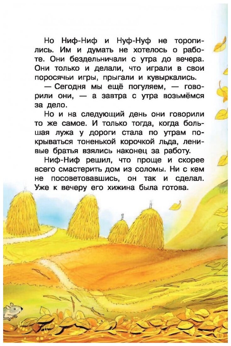 Книгу покупала ради "Трёх поросят". Текст соответствует, иллюстрации симпатичные, особенно домики мне понравились ))) К другим произведениям картинки тоже хороши. Крупный шрифт, белые, плотные листы. Очень нравится формат книг этой серии: не слишком маленький и не большой, удобный и уютный.