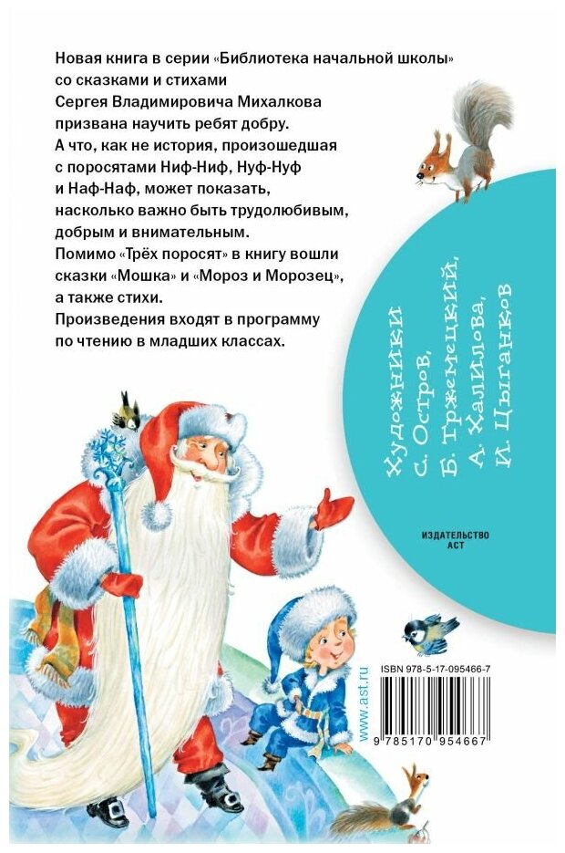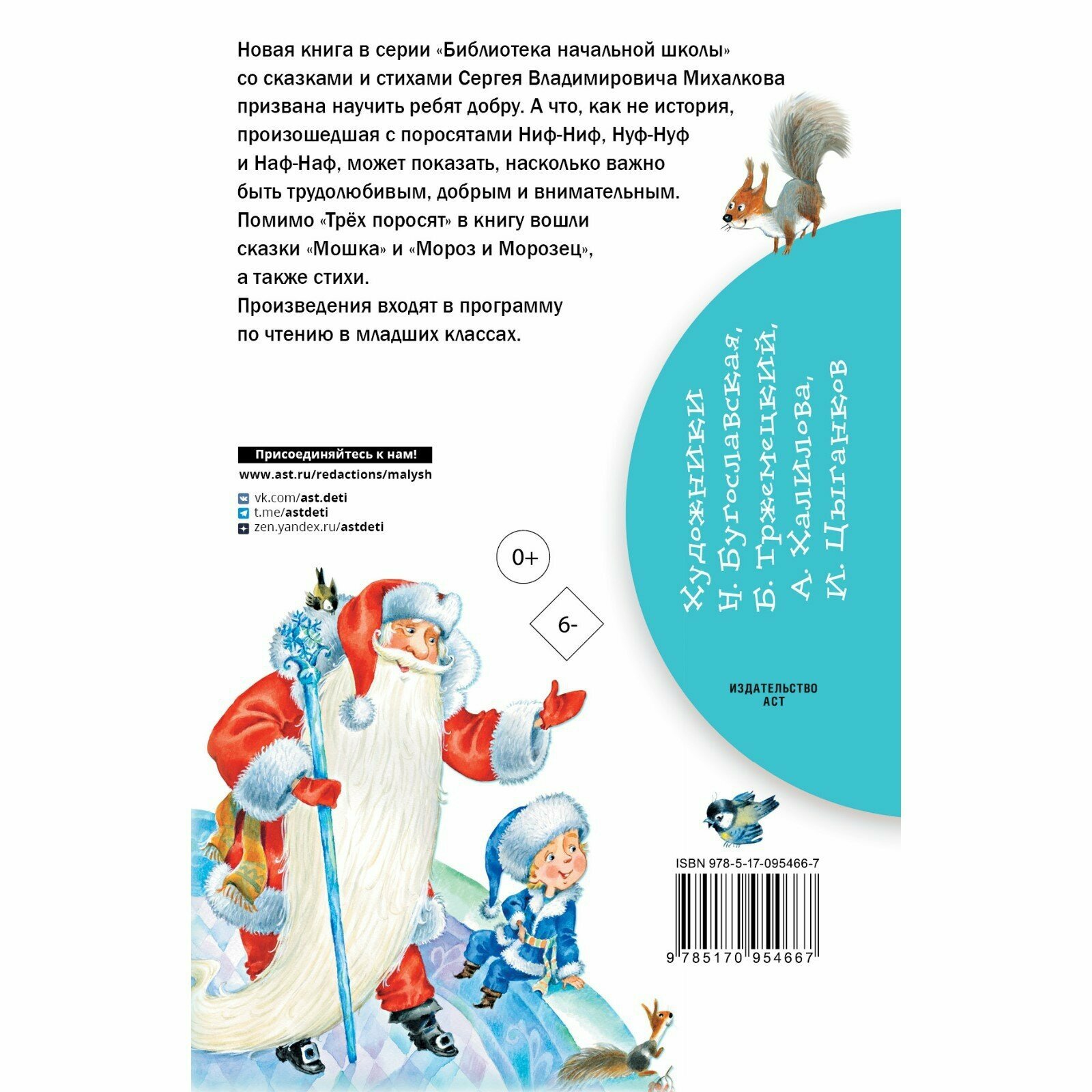 В книгу вошли сказки и стихи известного детского писателя С. Михалкова. "Три поросёнка", басня "Мошка", сказка в стихах "Мороз и Морозец", а также замечательные стихи "Мир", "Чудо", "Лапуся" и "Хорошие товарищи". Эти произведения объясняют ребёнку - тот, кто любит труд, справедлив к себе и помогает находящимся в беде, будет всегда иметь много друзей! Произведения входят в программу по чтению в начальной школе.