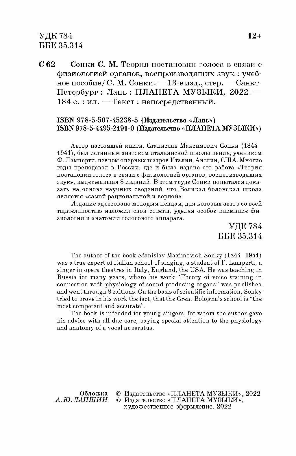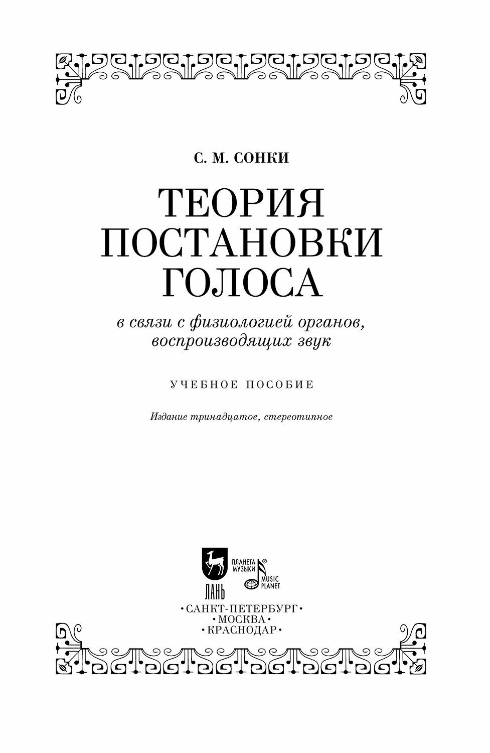 Теория постановки голоса в связи с физиологией органов воспроизводящих звук. Учебное пособие (Сонки Станислав Максимович); Планета музыки, 2022