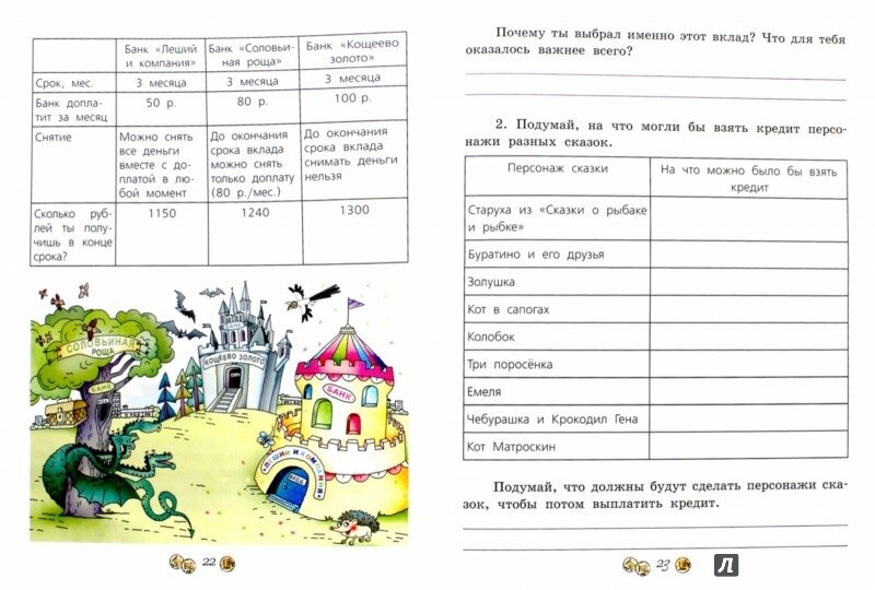 Увидела эту книгу, или рабочую тетрадь, на Московском образовательном салоне вместе с другими изданиями на тему финансовой грамотности. Понравилась - купила. Тетрадь идёт "в паре" с книгой того же автора "Сказ про то, как Иван царство спас", так как предполагается обсуждать прочитанное в сказке. Для младших школьников. Качество печати хорошее, формат чуть меньше А4. Некоторые вопросы по иллюстрациям сформулированы странно на мой взгляд, но в целом покупке рада, так как эти издания хорошее начало для разговора с детьми о деньгах и финансовой системе.
