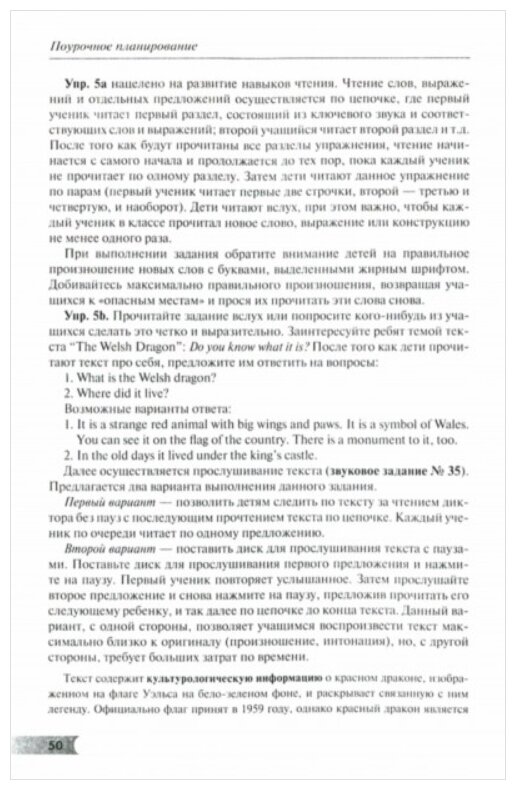 Поурочное планирование является неотъемлемым компонентом учебно - методического комплекта по английскому языку для 4 класса общеобразовательных организаций. В нем подробно изложен ход каждого урока и даны методические рекомендации по выполнению упражнений в Учебнике, Звуковом пособии и Рабочей тетради; предлагаются альтернативные задания, в том числе творческого характера, задания для внеклассной работы, а также образцы ответов к упражнениям.