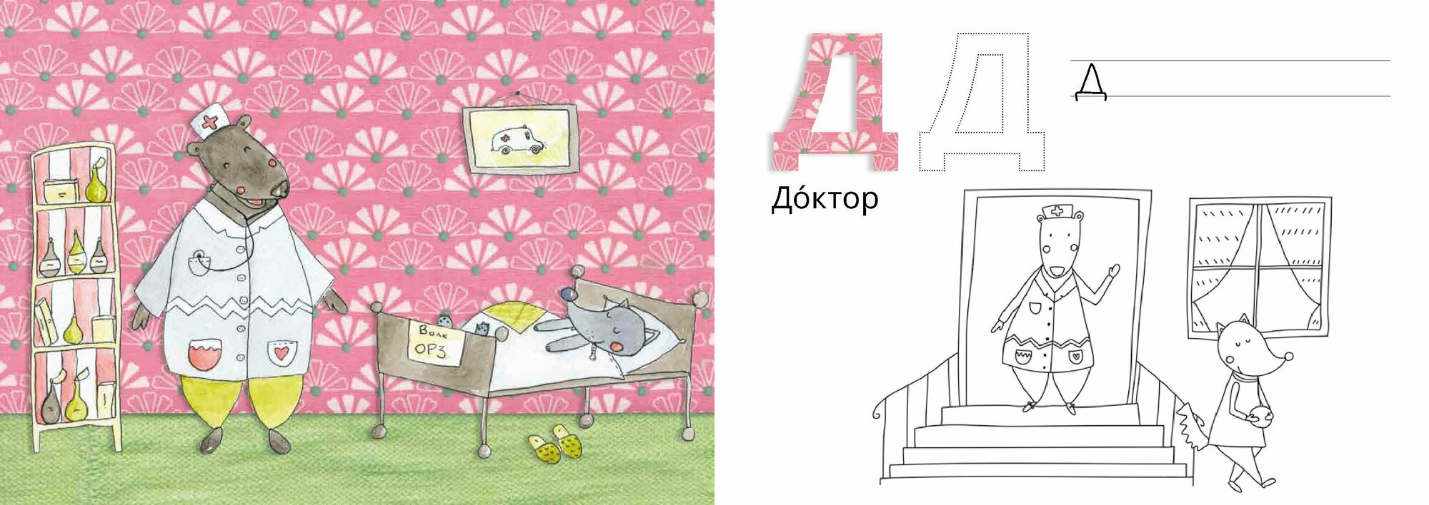 В начале книги можно найти памятку о том, как можно заниматься по книге, а в конце - интересные задания (потренироваться в написании букв, вспомнить другие названия профессий, придумать свои узоры для букв)