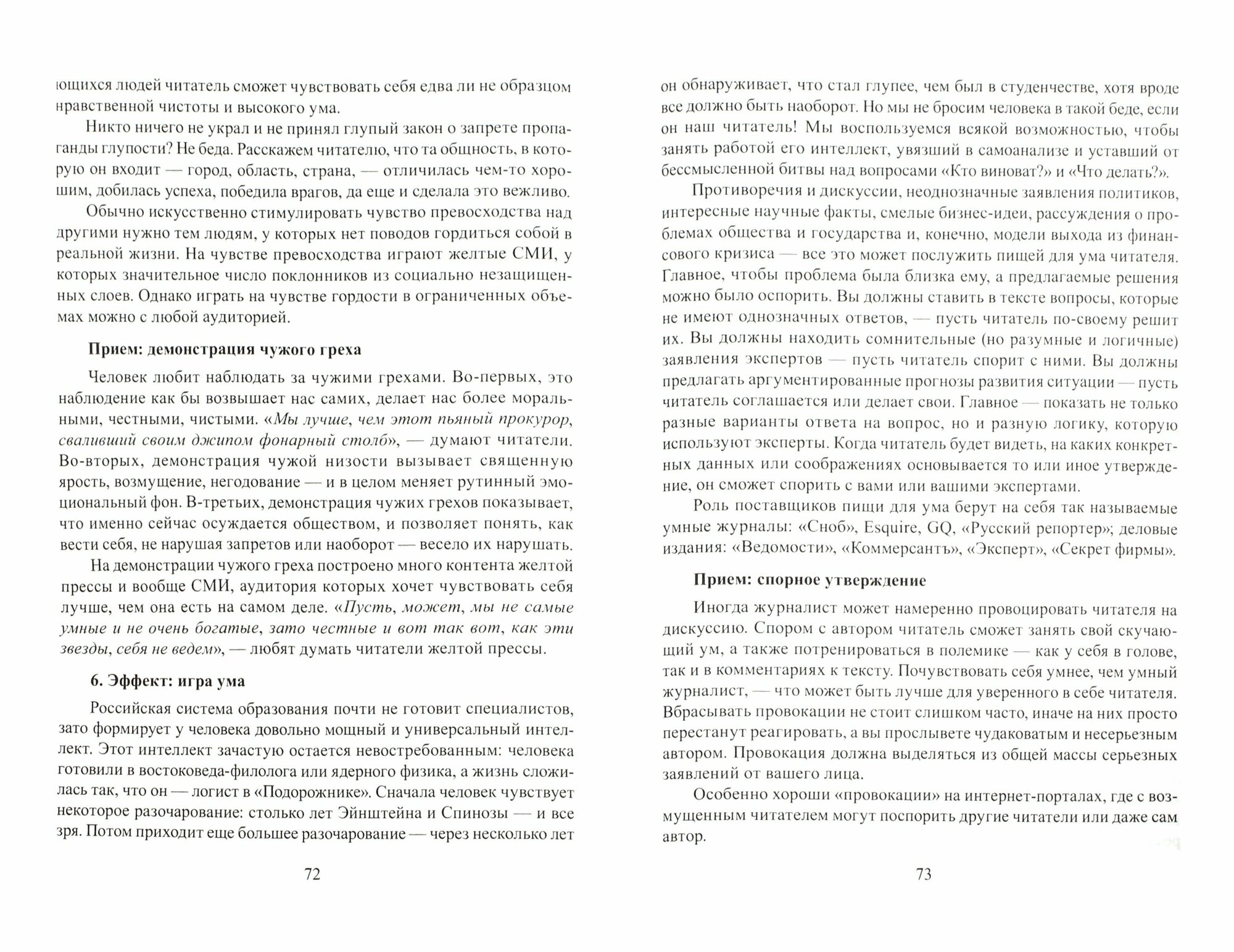 Отличное учебное пособие для начинающих журналистов! Тут есть всё, что нам надо знать, весь тот костяк, который нужен для написания публицистических текстов, интервью, для избежания типичных ошибок. Рекомендую всем! Думаю, лишним это пособие не станет и для опытных журналистов. Что касается качества самой книги, обложка у неё мягкая, листы тонкие, шрифт средний. Но в любом случае, содержание в книге играет решающую роль.