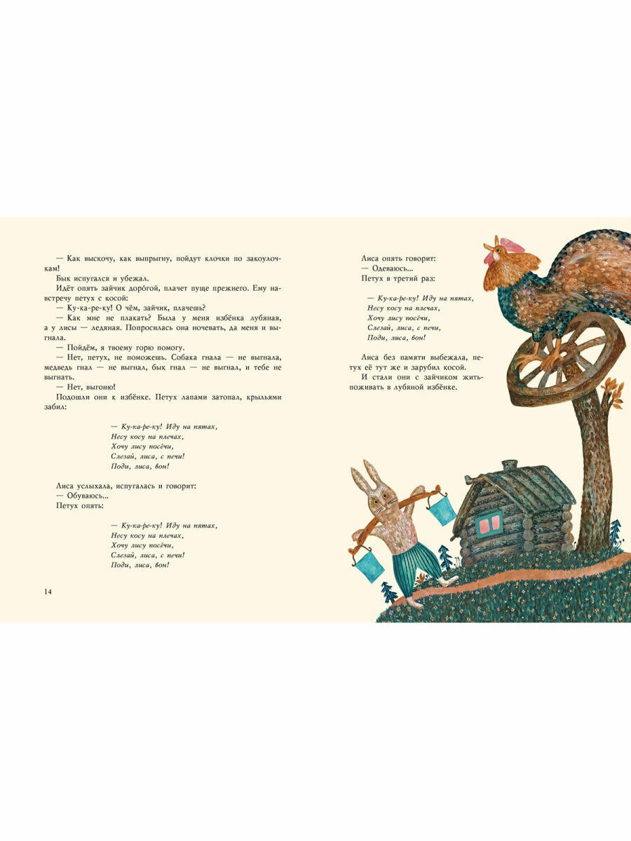 В книгу вошли русские сказки про зверей в пересказе выдающегося писателя Алексея Николаевича Толстого: "Лиса и журавль", "Журавль и цапля", "Лиса и заяц", "Кривая уточка".